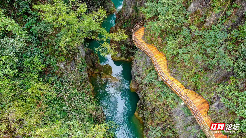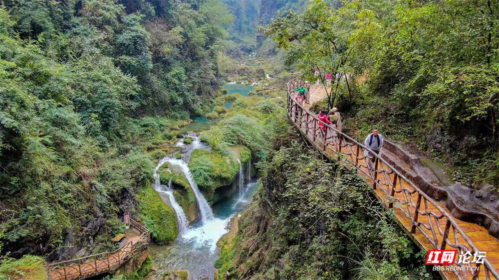 初冬的古苗河百瀑大峡谷,依然绿水长青,青山如黛。这条静卧于湘西花垣县城东南约三公里处的峡谷,是国家4A级旅游景区,全长约12.8公里。这条原生态峡谷,完美交织了奇、险、秀、美的自然神韵。举目望去,但见两岸高山耸立,树木参天,陡峭的崖壁更显原生态的壮丽与非凡。